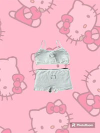2 piece rhinestone hello kitty cotton bralette and short set. Bralette includes removable padding.